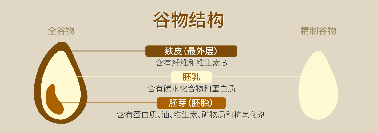 首先我们来了解一下谷物的结构,完整的谷物(即全谷物)包含三个部分: