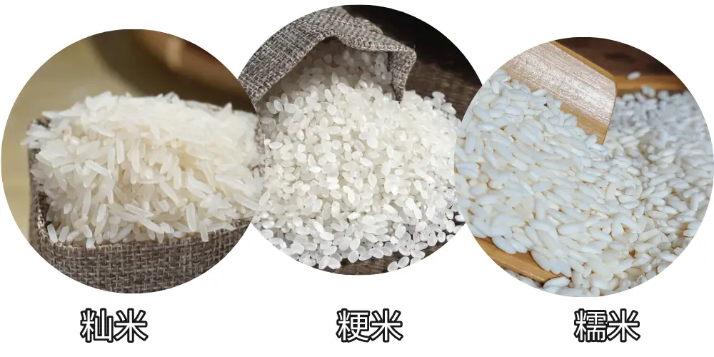 根据米煮熟以后的黏性,可以把大米分为 粳米、籼米、糯米 三大类。其中,粳米外形呈椭圆形,比较短粗,代表品种是东北大米(珍珠米)、日本米;而籼米又被称为长粒米,是中国南方常见的大米,泰国香米、越南米也属于籼米。